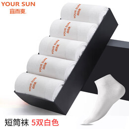 宜而爽【新疆长绒棉】袜子男士7A抗菌防臭吸汗短袜透气纯色中长筒袜秋冬 白色短筒【新疆长绒棉】5双