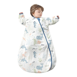 贝肽斯睡袋婴儿春秋恒温新生儿童宝宝睡袋一体式防踢被惊跳包被发热神器 感温【春秋双层 室温20-26°】海之微笑 S码【适合身高55-70cm】建议年龄0-9个月