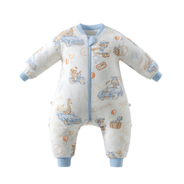 贝肽斯睡袋婴儿春秋季儿童宝宝3-6岁纯棉分腿式防踢被保暖防惊跳连体衣 森趣牧歌【春秋双层 20-26°C】猫肚棉 S码 建议身高60-85cm建议0.6-1.3岁