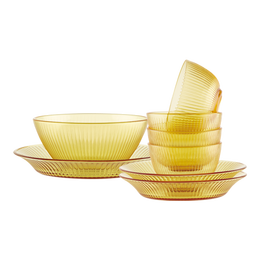 VISIONS康宁晶致餐具琥珀耐热玻璃碗盘套装玻璃碗盘子碗碟套装可进微波炉 康宁-晶致系列 8件套
