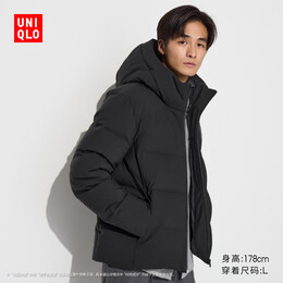 优衣库男装无缝羽绒连帽外套/羽绒服保暖休闲夹克470077 09 黑色 XS /160/76A