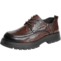 百丽(Belle)男鞋通勤商务皮鞋褶皱牛皮秋季加绒厚底正装鞋A1422AM4预售 棕色-单里 38 (240mm)