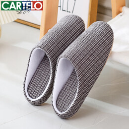 卡帝乐鳄鱼棉拖鞋男女居家冬季家居保暖室内静音布艺软底家用木地板情侣棉鞋 灰色 35-36