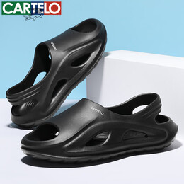 卡帝乐鳄鱼洞洞鞋男踩屎感新款防滑厚底防臭沙滩外穿男士运动户外凉拖鞋 黑色 MX6620 42 -43[运动鞋码]