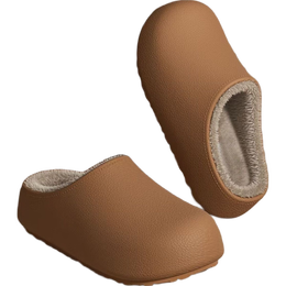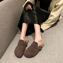 外穿厚底加绒勃肯鞋女士居家棉拖鞋女穆勒鞋保暖鞋月子鞋包头拖女 卡其色 38-39