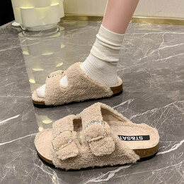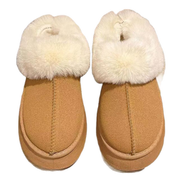 星期六【加绒保暖】毛毛拖鞋冬季2024新款一脚蹬棉拖外穿毛绒厚底女鞋 杏色【加绒保暖】 35