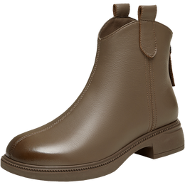 百思图冬商场新款美拉德羊皮靴法式小踝靴女加绒短靴G2172DD4 棕色绒里 34