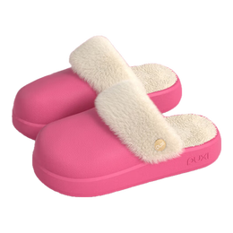 朴西防水棉拖鞋女士秋冬季居家室内保暖可拆卸毛绒拖鞋厚底增高男士 树莓红 36-37