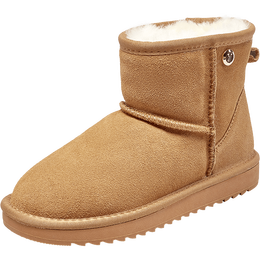意尔康女靴雪地靴女冬季东北加绒保暖棉鞋休闲百搭中筒靴子女 土黄色 加绒 35