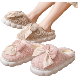 棉拖鞋女2025秋冬新款室内柔软防滑保暖毛绒蝴蝶结包跟居家毛拖鞋 蝴蝶结绿色 36-37