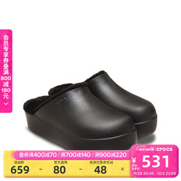 卡骆驰(CROCS)白鹿同款经典云朵暖绒洞洞鞋保暖舒适女士棉拖|212854 黑色-001 34 (210mm)