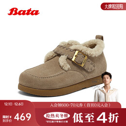 Bata勃肯毛毛鞋女2025冬商场新款英伦牛剖皮通勤保暖单鞋30922DM5 灰色 34