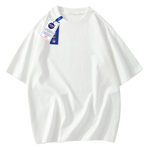 NASA GISS重磅260g纯棉短袖t恤男纯色圆领厚实不透纯白打底衫男女体恤上衣 白色 4XL 体重210-230斤