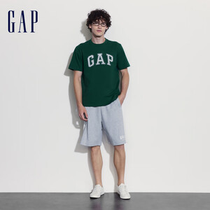 Gap男女装夏季拼接logo圆领短袖T恤宽松上衣460841 绿色 175/96A(L) 亚洲尺码