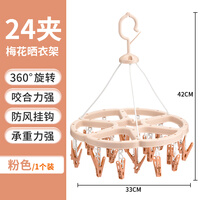 茶花(CHAHUA)晾晒衣架多夹子晒袜子神器圆形晾衣夹内衣架 粉色晒衣架(24夹)