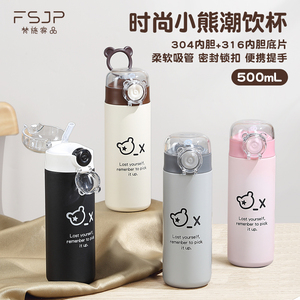梵施家品保温杯男女学生情侣吸管杯不锈钢食品级大容量儿童宝宝壶
