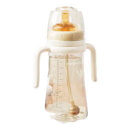 英氏(YEEHOO)婴儿奶瓶宝宝学饮杯儿童水杯婴儿喝水重力球PPSU奶瓶婴儿带手柄杯 奶白色配三头两重力球 300ml