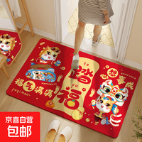 2026新款脚垫入户地垫喜庆红色进门防滑地垫新年民俗布置 新年踏福(80*120)