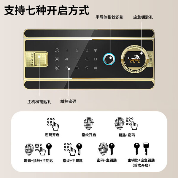 虎牌保险柜家用小型指纹密码WiFi保险箱办公全钢防盗可入墙 70金刚黑 驭尚系列(密码+指纹+京东小家App智控WiFi)