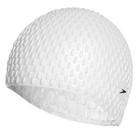 速比涛(Speedo)成人硅胶泳帽泡泡帽长发舒适防水护耳时尚游泳帽 白色
