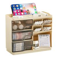抽屉式桌面收纳盒笔筒抽屉柜组储物柜遥控器收纳盒化妆品收纳盒 桌面多格收纳【一个装】颜色随机发活动1