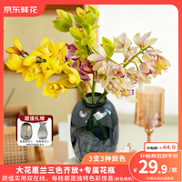京东鲜花大花蕙兰鲜切花3支三色送花瓶混色元旦氛围感鲜花家庭源头直发