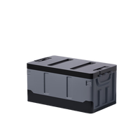 悦卡 后备箱收纳箱车载汽车储物箱可折叠户外露营车用杂物整理箱用品 【升级加厚】黑灰平盖小号35L
