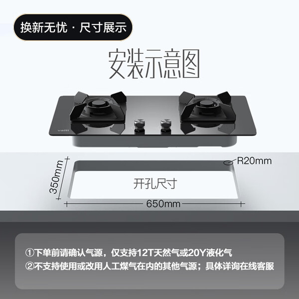 康佳(KONKA)燃气灶煤气灶双灶家用【国家补贴】 5.2kW天然气嵌入式台式双灶具 玻璃面板JZT-B500Y(天然气)