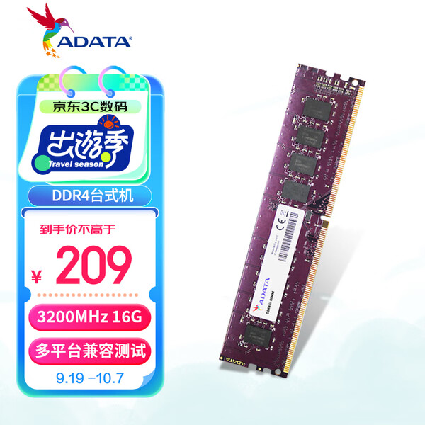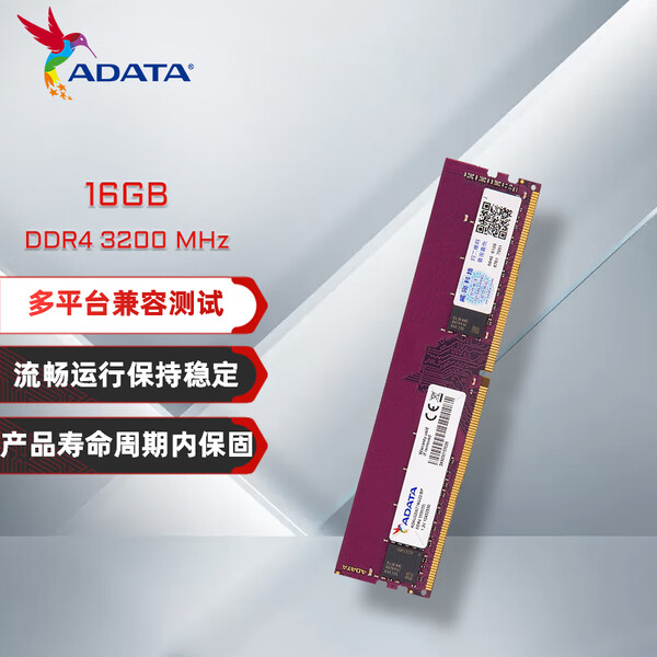 威刚(ADATA)16GB DDR4 3200 台式机内存 万紫千红(宽窄版本随机发货)