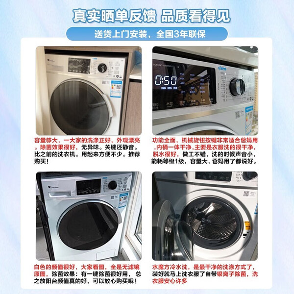 威力10/12公斤洗衣机超薄滚筒洗烘一体洗衣机一级能效全自动家用大容量智能洗 高温筒自洁 以旧换新 XQG100-1016DPHX白(超薄洗烘一体)