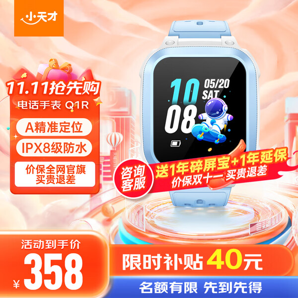 小天才儿童电话手表Q1R官方正品q1r智能电子手表3-6-12岁学生男女可插卡式定位4G全网通防水电话手表 【买贵退差】小天才Q1R 星蓝