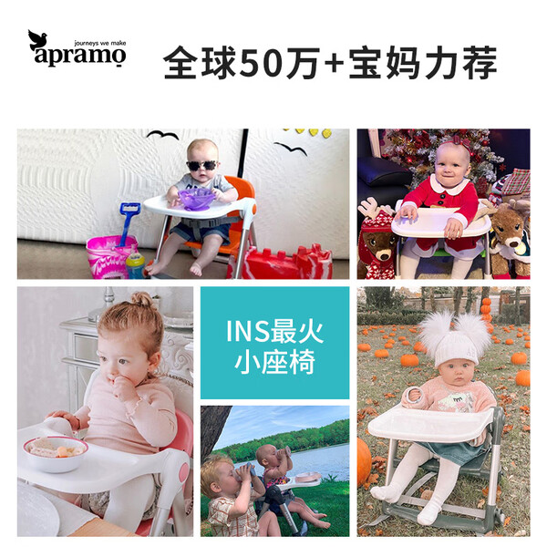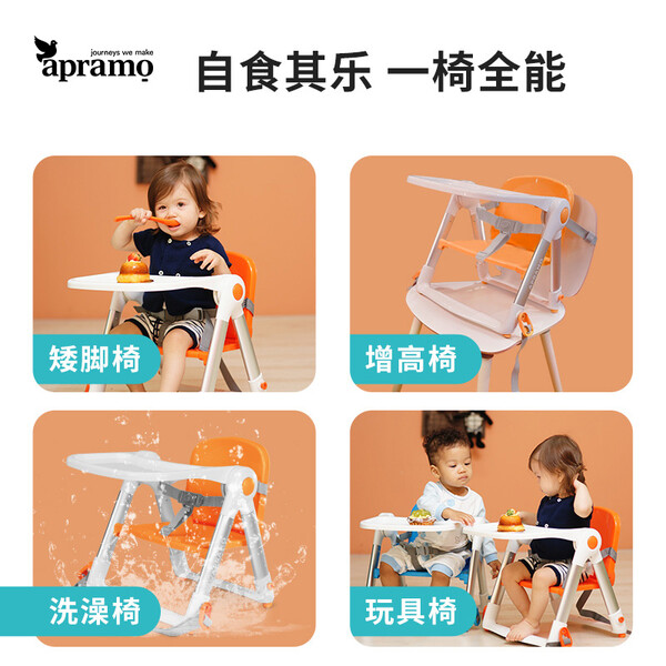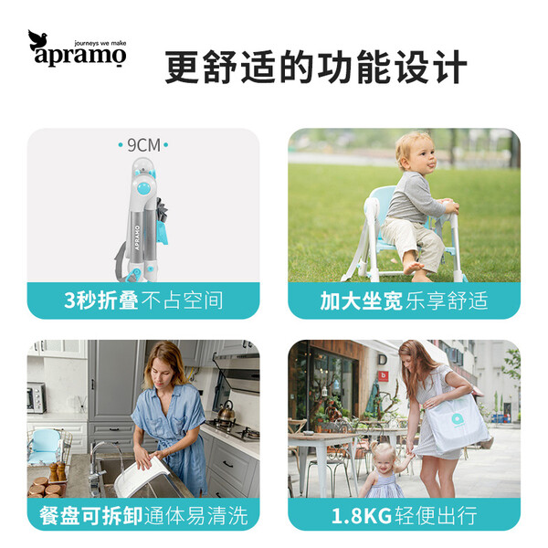 apramo安途美宝宝餐椅儿童餐桌椅便携可折叠宝宝椅子 爵士黑金限量款