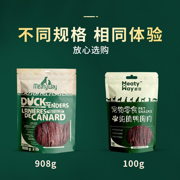Meatyway爵宴狗零食肉干 便携小包 磨牙棒训练奖励泰迪宠物狗狗零食鸭肉干 纯脆鸭肉干 1包共100g
