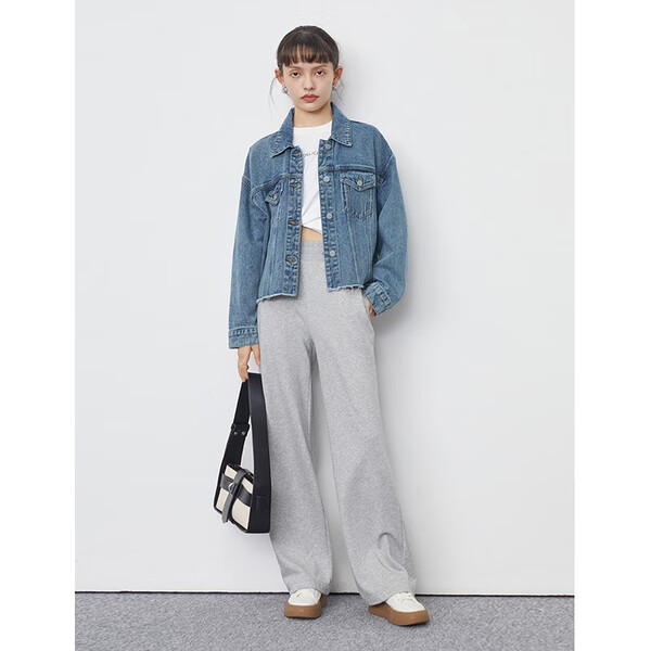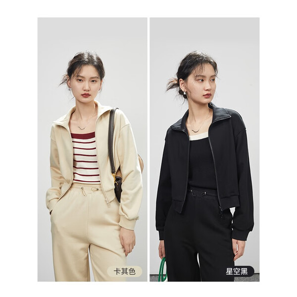 自巧小个子休闲卫衣套装女春秋新款连帽运动开衫外套chic上衣 卡其色上衣 XXS (148-151cm左右参考)
