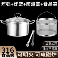 金汤银饺316不锈钢炸锅双耳木柄家用炸鸡薯条多功能泼油省油炸锅 双耳炸锅+炸篮+盖子+夹子 20cm