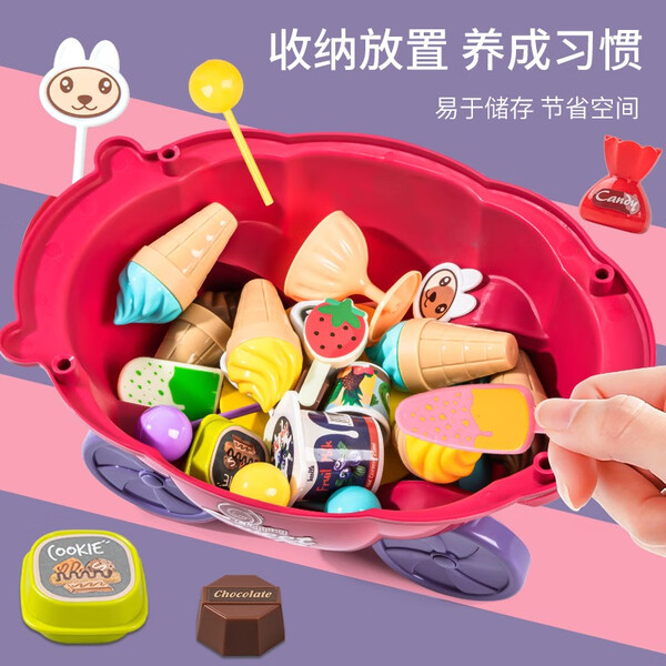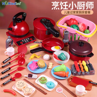 纽奇(Nukied)儿童过家家玩具女孩厨房做饭玩具水果蔬菜切切乐可剥新年礼物玩具 红色迷你厨具过家家52件套