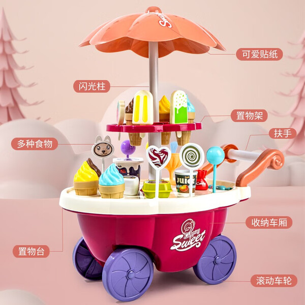 纽奇(Nukied)过家家玩具仿真小煎锅儿童玩具女孩六一儿童节礼物趣味diy厨房 声光煎锅+变色食物15件【红色】