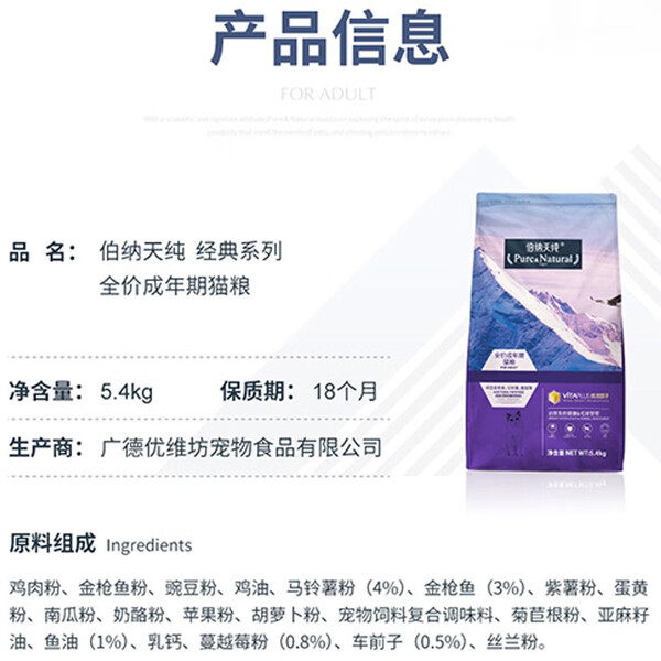 醇粹金标猫粮成猫幼猫通用全价全期猫粮含原切冻干鸡胸肉 【经典配方】金标益生元5kg 1包