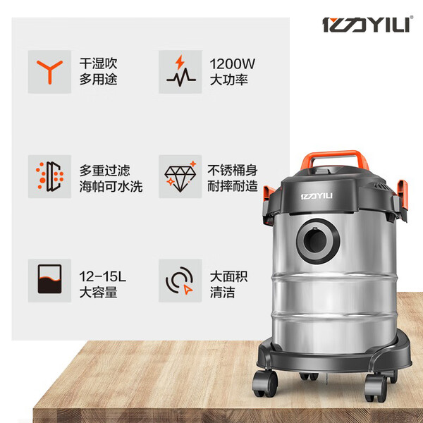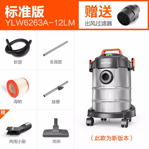 亿力吸尘器家用超强大吸力 干湿吹两用吸水除尘工业开荒汽车用车载地毯手持有线便捷桶式12L 国家补贴