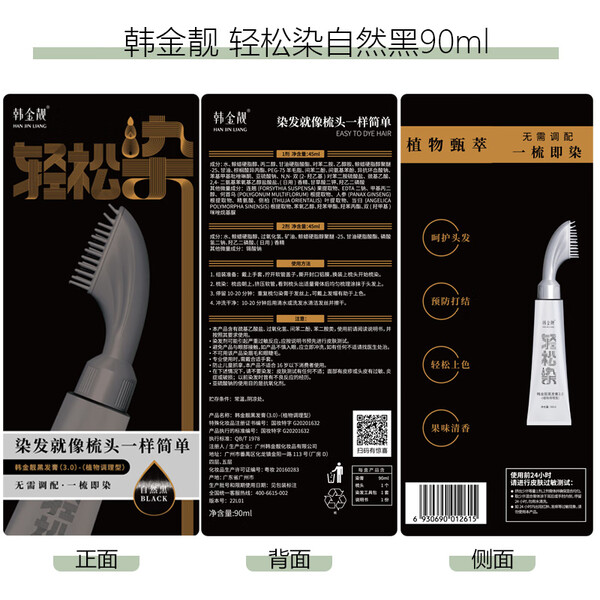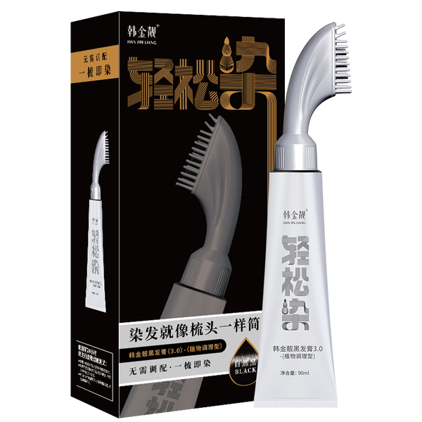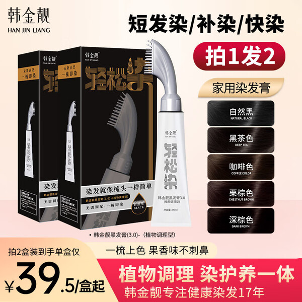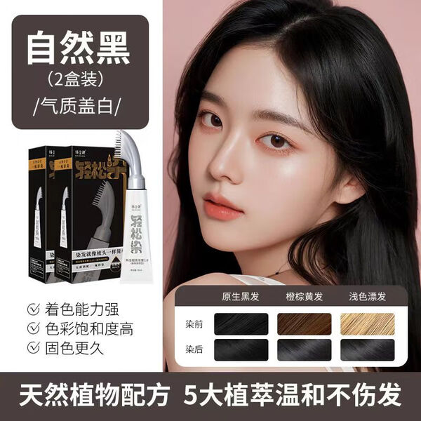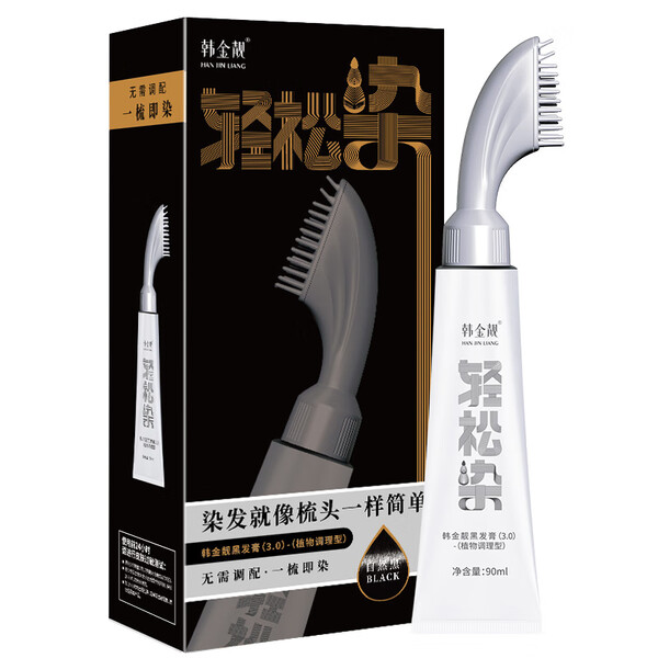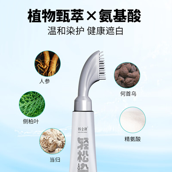 韩金靓易梳彩染发剂植物遮白发染发膏自己在家染不沾头皮染发梳男女士 自然黑 180ml*1盒 【可盖白发】