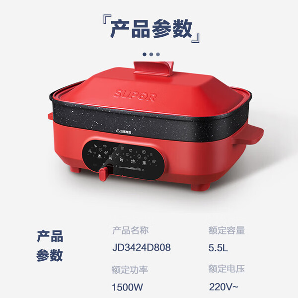苏泊尔(SUPOR)电火锅 分体式电煮锅 火锅专用锅 家用多功能涮肉打火锅 4L电热锅多用途锅 H28YK857