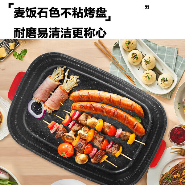 摩飞电器(Morphyrichards)二代升级多功能锅料理锅鸳鸯火锅5升定时预约烤肉涮一体蒸煮炒煎多用途电火锅MR9099 5L 清新绿套三【标配+六圆盘+平烤盘+丸子盘】