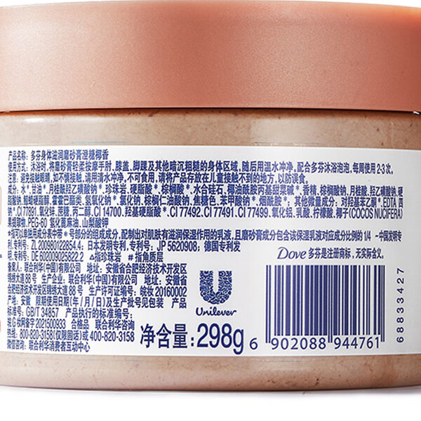 多芬身体滋润磨砂膏乳霜280g 澄糖椰香 温和磨砂 (包装随机)