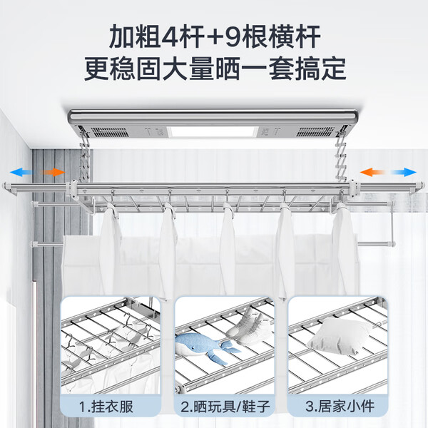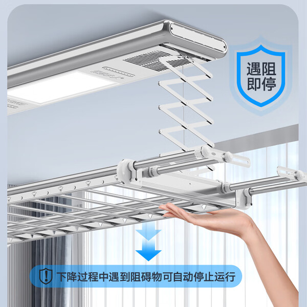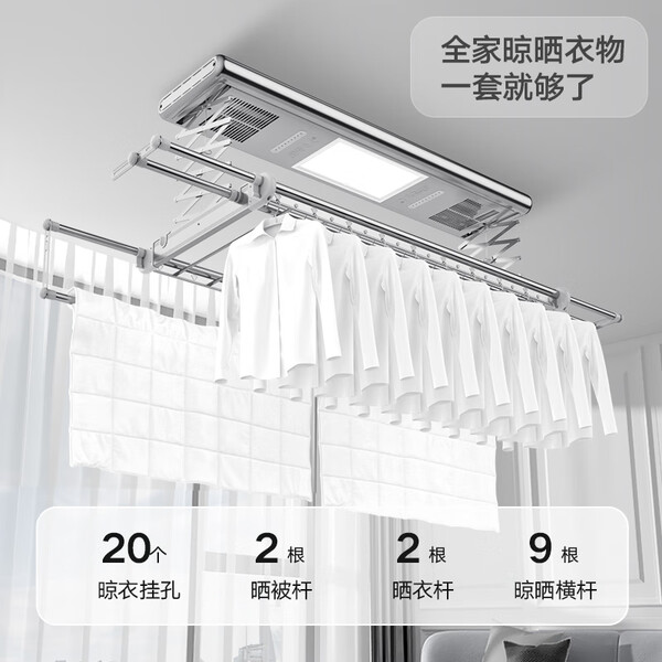 邦先生电动晾衣架阳台智能自动升降伸缩隐形晾衣机照明双杆晒被 M66pro 白色款 星空灯+离线升级+新晾杆