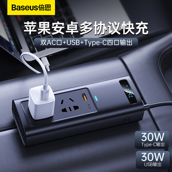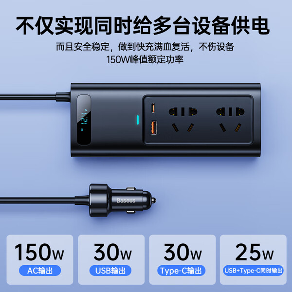 倍思(Baseus)车载逆变器12v转220v车载点烟插头电源转换变压器150W大功率插座