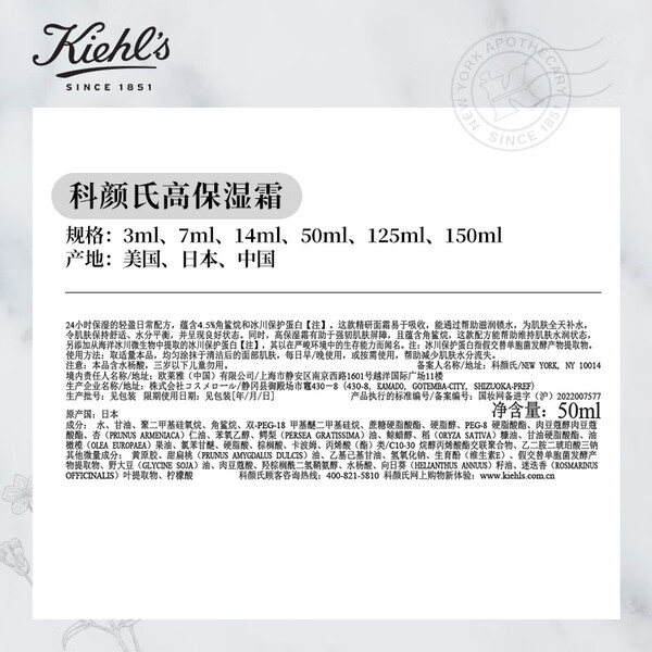 Kiehl’s 科颜氏是有着150余年历史的美国品牌,其在护肤、制药、药草等领域的产品在用户群中有着良好的口碑。科颜氏的高保湿霜是其家的明星产品,知名度不小。从用户评价来看,口碑还不错,尤其对于秋冬脸上爱起皮、偏干肤质的美眉来说平复效果很好,敏感干性肌肤也适用。 其中的角鲨烷成分是从橄榄中萃取出的精纯保湿油,与我们肌肤中天然的脂质是兼容的,即在某种程度上是类似于人的皮脂腺所分泌的皮脂的。 橄榄提取角鲨烷,分子结构与皮肤油脂相似,保证绝佳亲肤性,帮助肌肤快速吸收冰川保护蛋白成分,提取自南极假交替单胞菌NF3菌株将自然与科学巧妙结合提炼而成,科颜氏经典的保湿配方,敏感肌也同样适用。质感轻薄不黏腻,具有很好的亲肤性,能帮助吸收,保湿效果更佳~