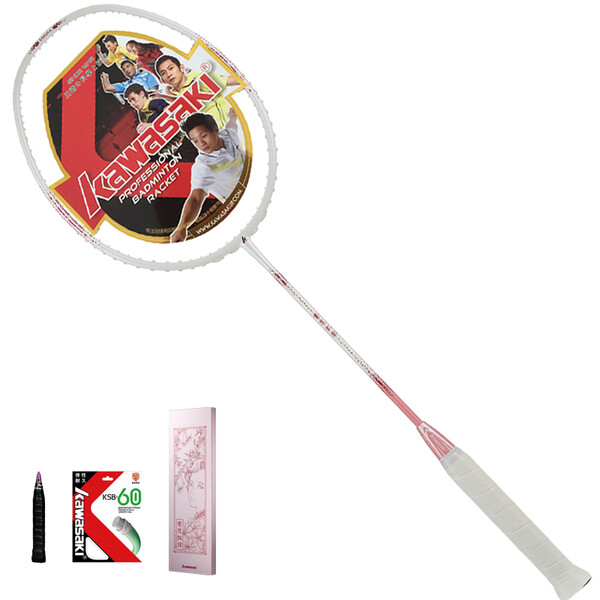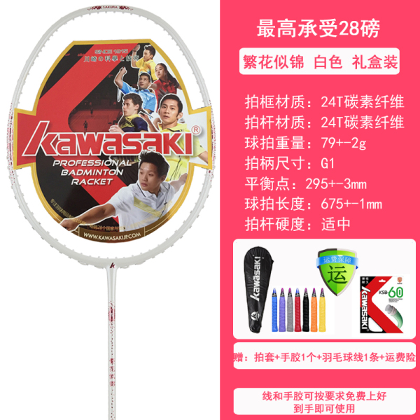 川崎(KAWASAKI) 川崎kawasaki羽毛球拍超轻中高级攻守平衡羽拍-可定制磅数拉好线 5U繁花似锦白色礼盒装