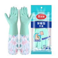 美丽雅手套洗碗加绒乳胶1双均码49cm加长冬季保暖耐磨家务厨房洗衣服