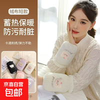 家庭手套女士成人短袖套秋冬防脏护袖头学生可爱绣花防污家务套袖 熊头卡其色 长款【约32CM】