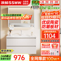 浪鲸浴室柜洗手盆柜组合陶瓷一体盆奶油风卫生间洗脸盆柜组合洗漱台 珍珠白|储物镜柜60cm